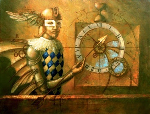 Jake Baddeley fantástico pintor simbolista holandés que representa con su maravillosa imaginación toda la fantasía en que se inspiraron los Grandes Maestros a través de la iconografía, la filosofía y la mitología. Su técnica más frecuente es el óleo y el uso de colores transparentes. Sus obras más famosas: “Meta”, un tema surrealista, “El Pozo”, “La cuadratura del círculo” de 2005 y “Umbral” entre otras muchas. Leonardo Da Vinci desempeña una influencia importante en sus trabajos con una profundidad en contenidos llegando a conclusiones similares. Mediante la aplicación de sus conocimientos de la geometría a lo que había aprendido acerca de la proporción humana, se dio cuenta de que podría desbloquear ciertos secretos ocultos en el famoso dibujo "El Hombre de Vitruvio" de Leonardo, que muestran que sabía más que nadie acerca de las conexiones milagrosas entre estos dos temas aparentemente sin relación. Una división de la famosa llamada "sección áurea" juega un papel importante también en este caso. Esta división también se puede encontrar por todo el cuerpo, y toda la naturaleza y ha sido utilizado por artistas y arquitectos durante miles de años que eran conscientes de sus propiedades profundas, y único. También podemos distinguir que sus pinturas son encendidas por la luz de la imaginación, la luz verdadera del conocimiento oculto de las escuelas filosóficas de los misterios. Pero también son producto de sus sueños y también se bañan en esa luz. Es una luz emocional, que puede transportar una sensación, una idea o un concepto. Igual puede también representa la luz de la nostalgia, de una memoria distante, la luz del jardín mágico de su paso trascedente por la tierra. El dibujo es el corazón de una imagen, su alma el color.